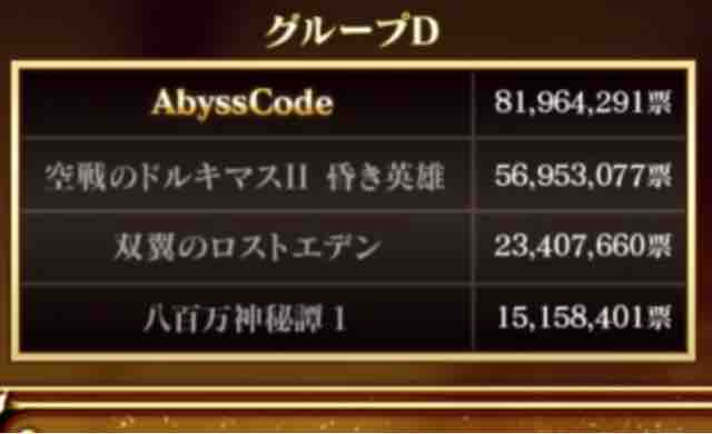 投票結果は残念でしたが、まぁ続編が控えてるのは確定でしょうし