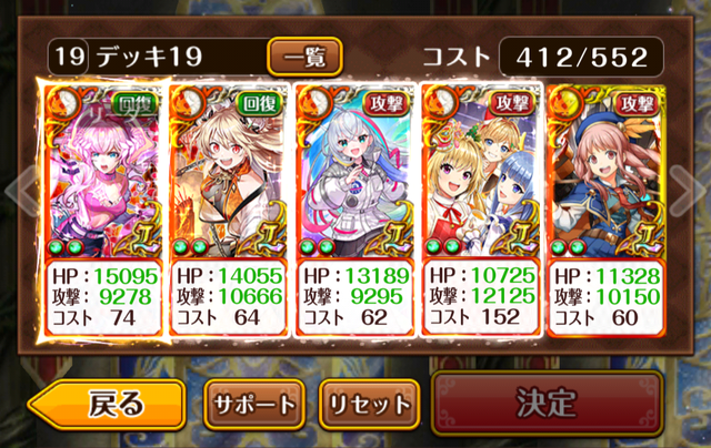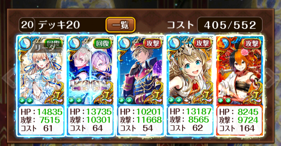 最近の接待の酷さに、辟易してます。意地で頭取&ヴィレラシュ引けてなんとか助かった身です(他にライフアタックは水着のが1人引けてたけど他がとにかく足らない)普段から0/20とか1/20じゃなんもできないので不貞腐れ時期はとうにきております。