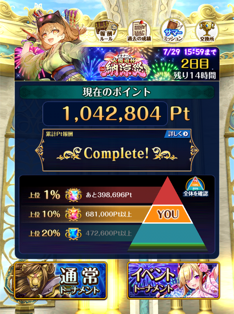 ライフアタックは誰も引けておらず、光デッキも組めず、なんかもう魔道杯のやる気が彼方へ行ってしまって、一応絶級周回はちょろちょろしていますが現状30万くらいしか積んでおりません。