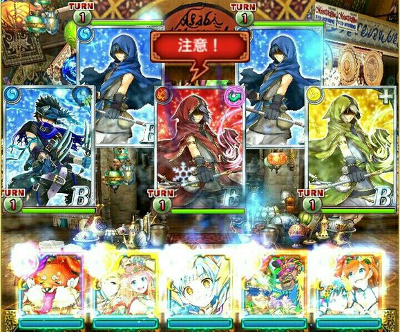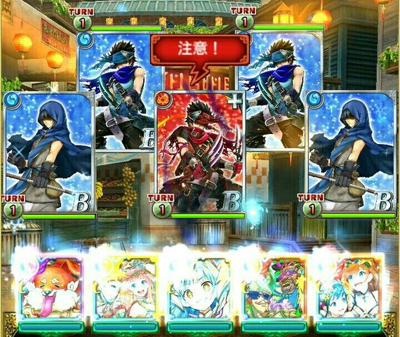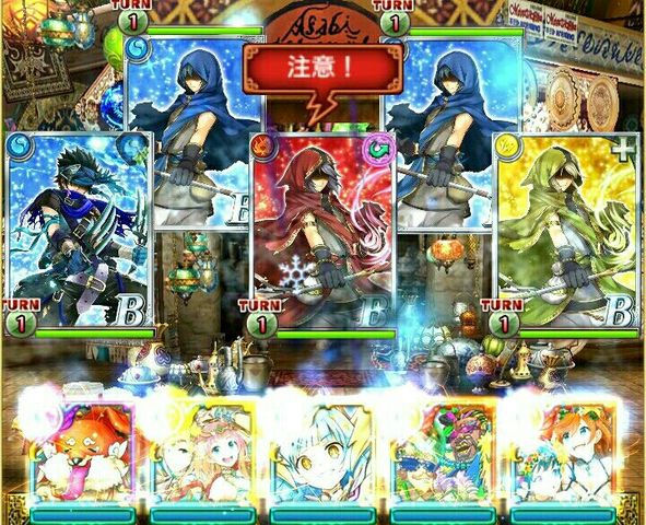 以下、色々なパターンがありますが基本的には1ターン目に出てきた水属性を倒せば大丈夫なはずです。